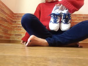 中でもスニーカーは白の靴ひもを紺にカスタマイズです👟💕