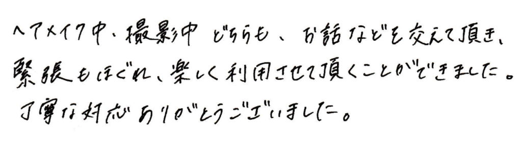ヘアメイク中、撮影中どちらも、お話など交えて頂き、