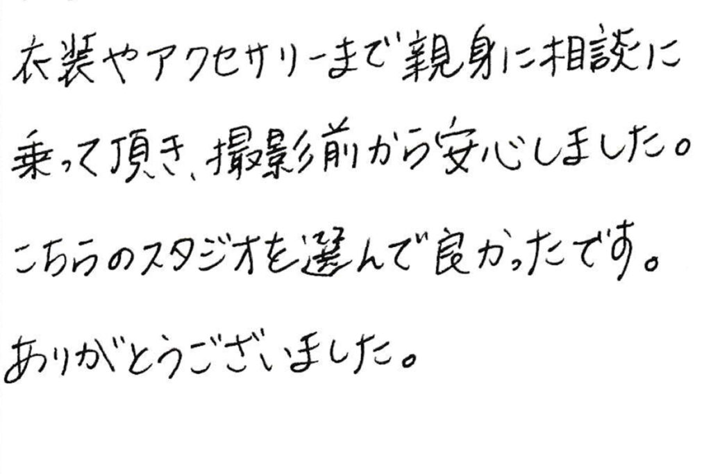 2025.05.10 お客様の声 684 婚活写真でご来店のお客様より 衣装やアクセサリーまで親身に相談に乗って頂き、撮影前から安心しました。こちらのスタジオを選んで良かったです。ありがとうございました。