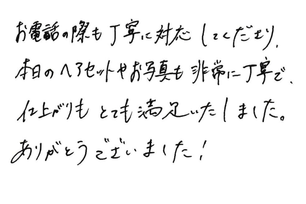 2025.08.08 お客様の声 699 演奏会プロフィール写真でご来店のお客様より お電話の際も丁寧に対応してくださり、 本日のヘアセットやお写真も非常に丁寧で、 仕上がりもとても満足いたしました。 ありがとうございました!
