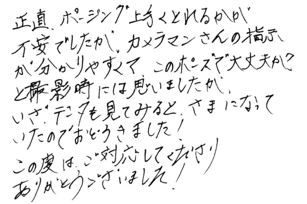 不安でしたが、カメラマンさんの指示