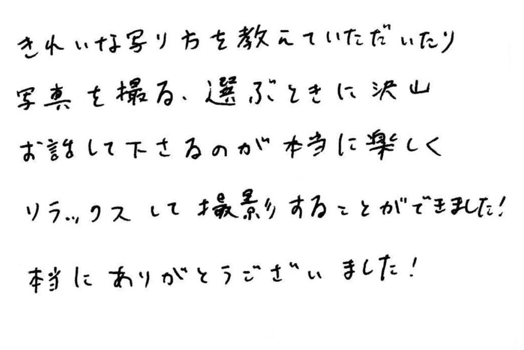 リラックスして撮影することができました!